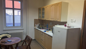 Prízemie: chodba, toaleta, dve kancelárie, obe s výmerou 22,45 m2, kuchynka s linkou a sporákom, kúpeľňa so sprchovým kútom, špajza/archív