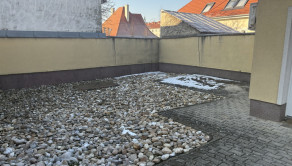 Parkovanie vo dvore má spevnenú plochu zo zámkovej dlažby s parkovacícmi miestami pre približne 6 áut.