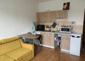 Garsónka je po čiastočnej rekonštrukcii, zariadená a vybavená spotrebičmi.